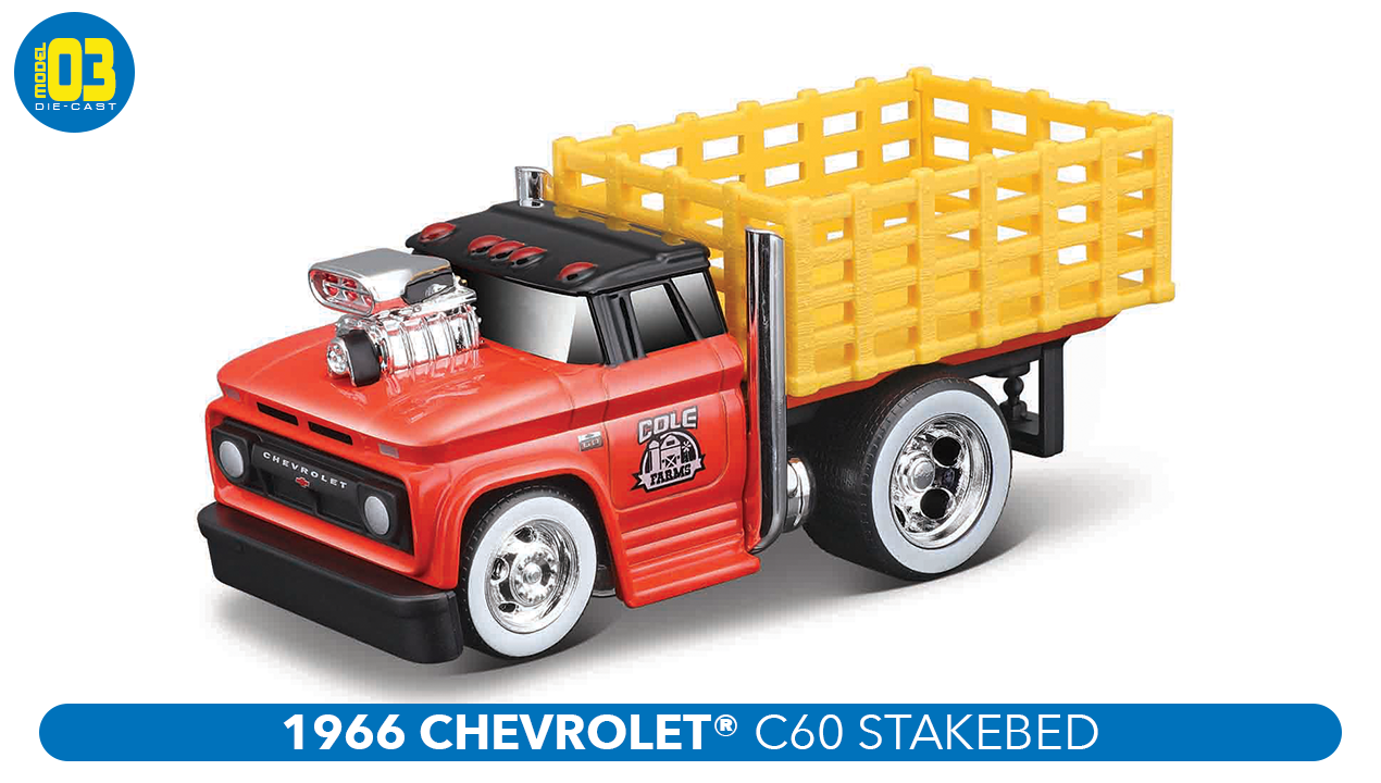 Large and in charge, Muscle Machines Work Rigs are built to get the job done! Kustom-styled, hot-rodded and still able to deliverDie-cast metal Body with plastic parts. Collectible details and real rubber tires. Famous Stylized look Approx. 4.5" in Length